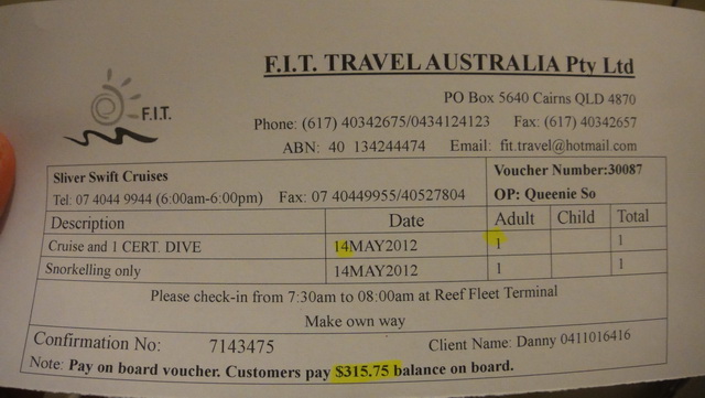 當然~跟 F.I.T 的代辦說了~我不要體驗潛水囉!!